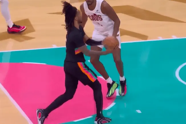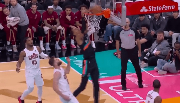 第一節(jié)比賽,卡斯扣卡斯?fàn)柾黄聘邟伌虬寤貜?,爾突文班亞馬跟進(jìn)空接雙手暴扣。破高拋打