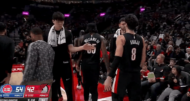 [流言板]有機會嗎?開拓者次節(jié)落后活塞12分,楊瀚森替補席掛著毛巾