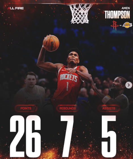 虎撲12月26日訊 火箭官方更新ins,曬阿門-湯普森數(shù)據(jù)海報。箭官