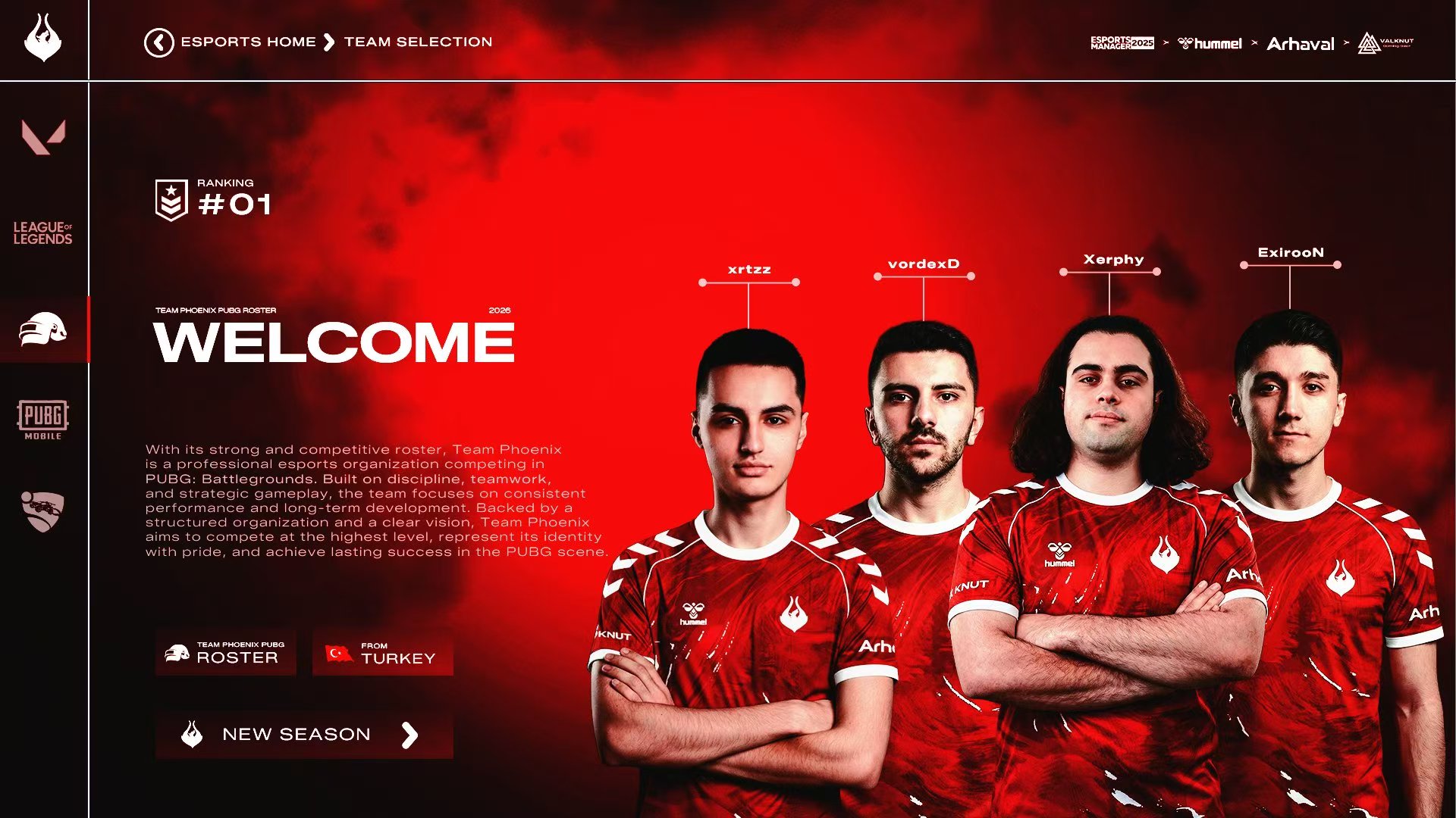 該戰(zhàn)隊是一支純土耳其戰(zhàn)隊,旗下還擁有瓦羅蘭特、PUBGM、英雄聯(lián)盟等分部