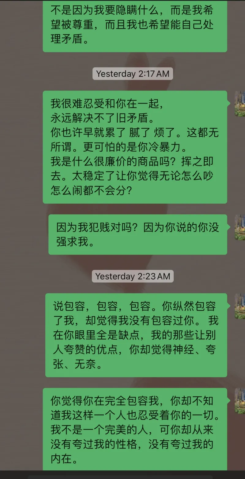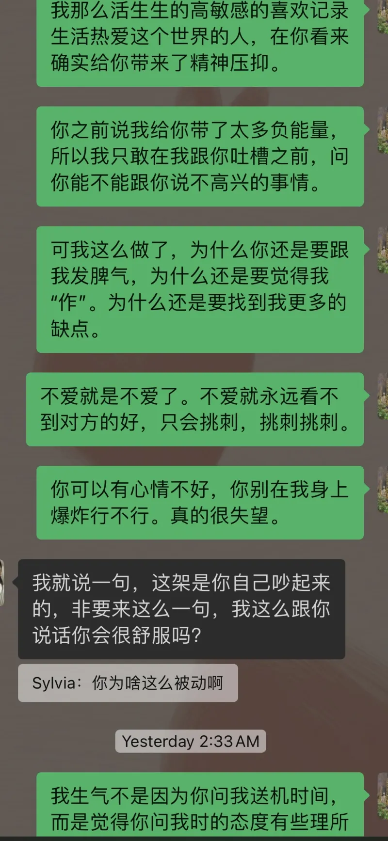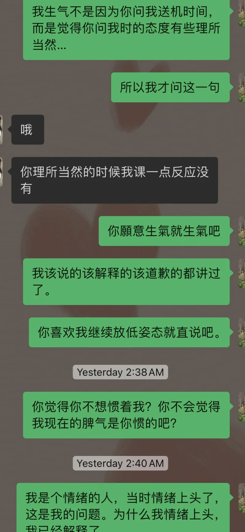 我知道我不應(yīng)該問(wèn)出那句你怎么那么被動(dòng)。這是吵架我的問(wèn)題我承認(rèn)。但我這么問(wèn),聊天記錄后面有解釋。這個(gè)解釋肯定不會(huì)被所有人接受。但還是希望看完再評(píng)論。