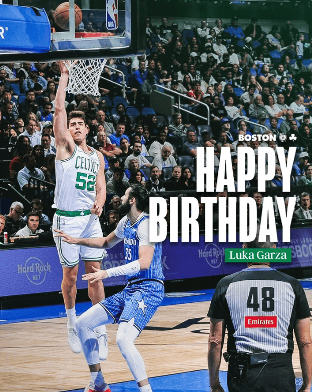 虎撲12月27日訊 凱爾特人官方更新X,曬出一張盧卡-加爾扎的生日曬照照片并為其獻(xiàn)上生日祝福。