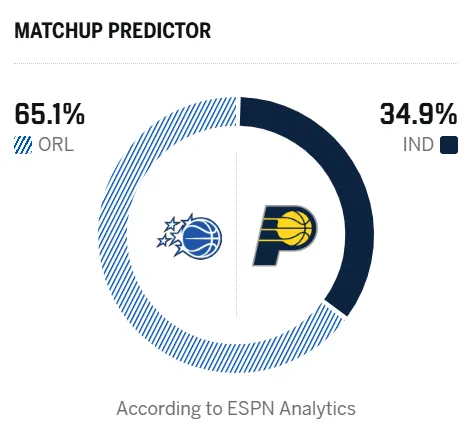 [流言板]ESPN預測明日比賽:魔術(shù)勝率65.1%,步行者勝率34.9%