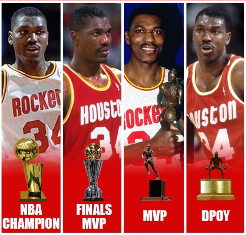 1993-94賽季,到年當(dāng)時效力于火箭的奧拉哈基姆-奧拉朱旺包攬了當(dāng)年的MVP,DPOY,朱旺Y總總冠軍和FMVP。冠軍