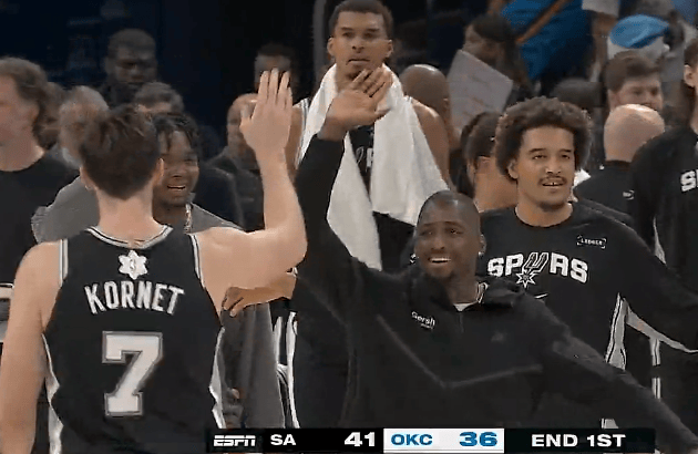虎撲12月26日訊 NBA常規(guī)賽圣誕大戰(zhàn),馬刺客場對陣雷霆比賽正在進行中。板激