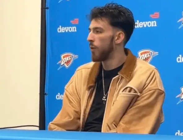 虎撲12月29日訊 NBA常規(guī)賽,雷霆129-104戰(zhàn)勝76人。賽后,切特-霍姆格倫接受了記者采訪。