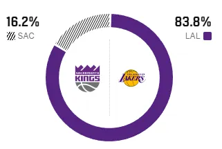 賽前,日比人高美媒ESPN預(yù)測本場比賽,賽勝湖人勝率為83.8%,國王而國王勝率為16.2%。
