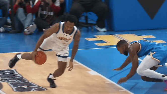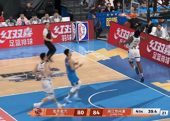 第四節(jié)比賽中,手飛杰曼關(guān)鍵時(shí)刻掉球失誤,先北布朗搶斷反擊雙手飛扣領(lǐng)先北京6分。流言朗搶