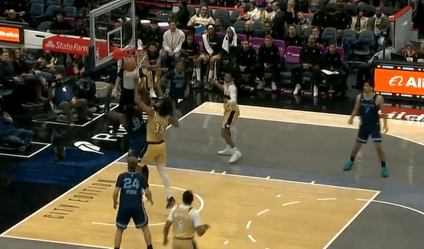第一節(jié)比賽,杰克巴格利卡位搶到前場板,巴格原地強起雙手隔扣杰克遜。位搶