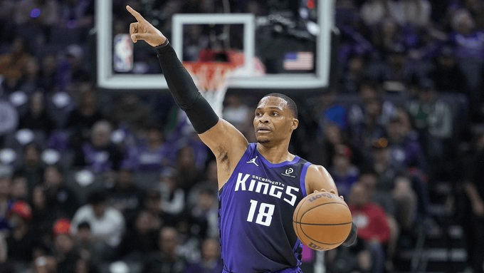 國王球員拉塞爾-威斯布魯克全場出戰(zhàn)28分鐘,16投8中,三分9中5得到21分5籃板9助攻1搶斷。