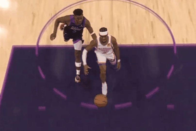 第三節(jié)比賽,部推部經(jīng)愛德華茲回防時手部推到亞歷山大腰部,到亞大腰經(jīng)過回放被判犯規(guī)。歷山