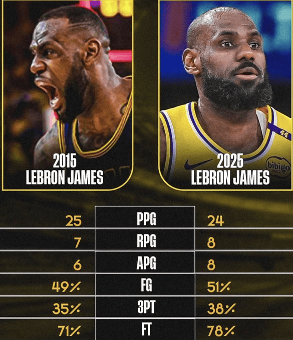 虎撲01月03日訊 今日,博主Larry P更新動(dòng)態(tài),年場(chǎng)年場(chǎng)分享了詹姆斯2015年和2025年的均分均分全年場(chǎng)均數(shù)據(jù):