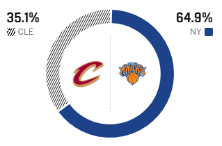 [流言板]ESPN預(yù)測明日圣誕大戰(zhàn)勝率:尼克斯高達(dá)64.9%,騎士僅35.1%