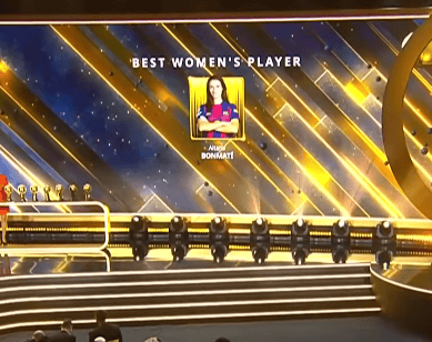 虎撲12月29日訊 環(huán)球足球獎(jiǎng)?lì)C獎(jiǎng)典禮今日舉行,巴薩女足獲得年度最佳女足俱樂(lè)部,獎(jiǎng)最佳女巴薩女足核心邦馬蒂獲得年度最佳女足球員。蒂獲