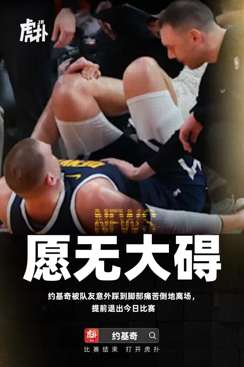 第二節(jié)比賽,到腳地離約基奇被隊友意外踩到腳部痛苦倒地,苦倒隨后一瘸一拐走出球場。場提出今