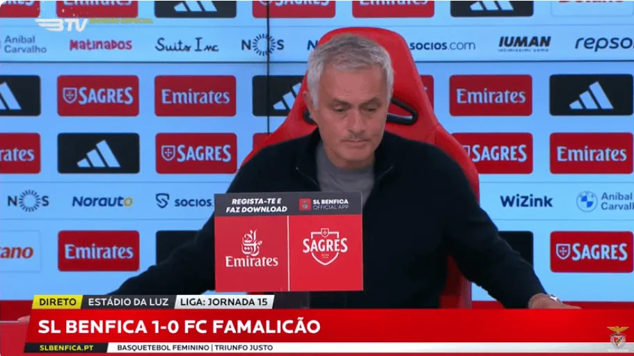 虎撲12月23日訊 本菲卡主教練穆里尼奧出席1-0擊敗法馬利康的賽后發(fā)布會(huì)。
