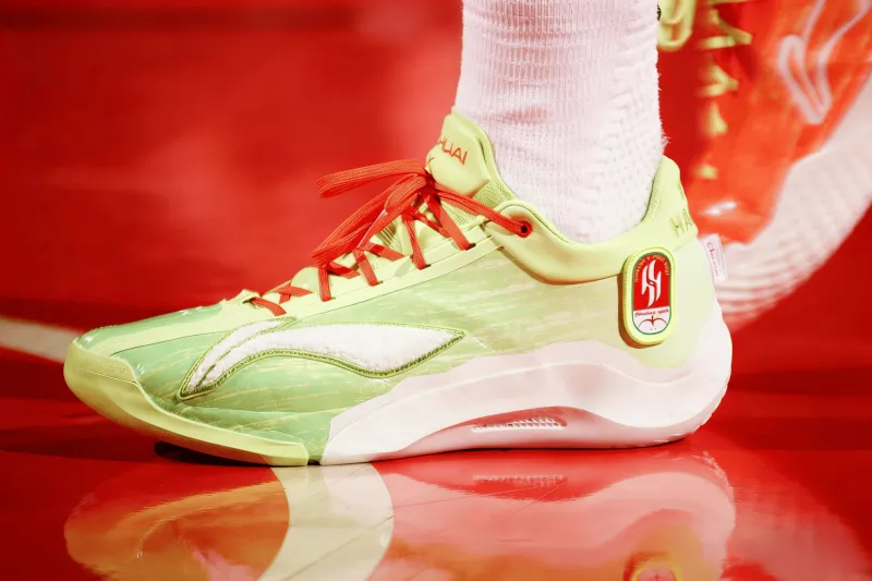 比賽中,楊瀚森上腳圣誕配色李寧 馭帥20。