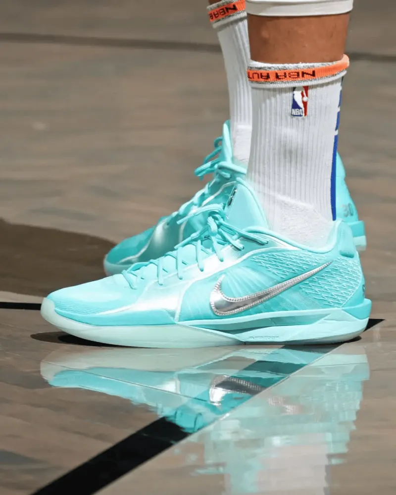 比賽中,庫里上腳SLAM×Nike Sabrina2。