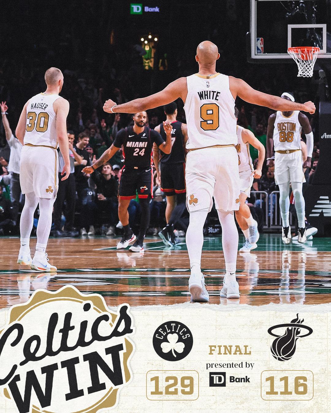[流言板]正負(fù)值+27!凱爾特人曬戰(zhàn)勝熱火的贏球海報(bào),懷特出鏡