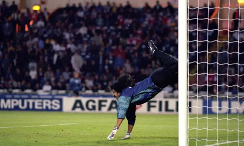 1995年9月6日,在溫布利大球場,英格蘭隊與哥倫比亞隊進(jìn)行了一場友誼賽,當(dāng)雷德克納普選擇遠(yuǎn)距離吊門時,伊基塔做出了一個讓所有人至今都會驚呼的動作: