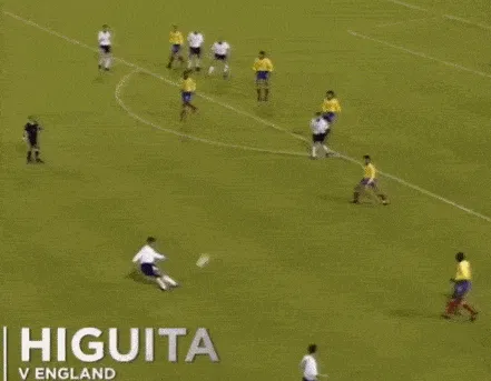 1995年9月6日,在溫布利大球場,還表英格蘭隊與哥倫比亞隊進(jìn)行了一場友誼賽,當(dāng)雷德克納普選擇遠(yuǎn)距離吊門時,伊基塔做出了一個讓所有人至今都會驚呼的動作: