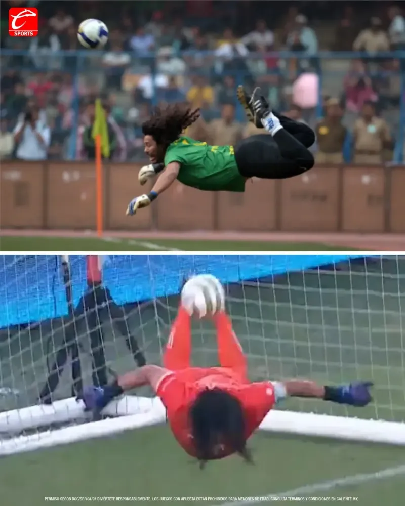 認(rèn)真來說,這記蝎子擺尾的觀賞性并不高:伊基塔看起來明顯發(fā)福了,而這個球都不是完整的雙腳觸球,皮球的高度和落點(diǎn)都算不上一次合格的撲救,更像是一個“表演動作”。