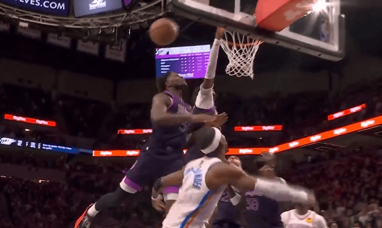 虎撲12月20日訊 今日NBA常規(guī)賽,森林狼主場112-107力克雷霆。茲最中分追帽終結(jié)