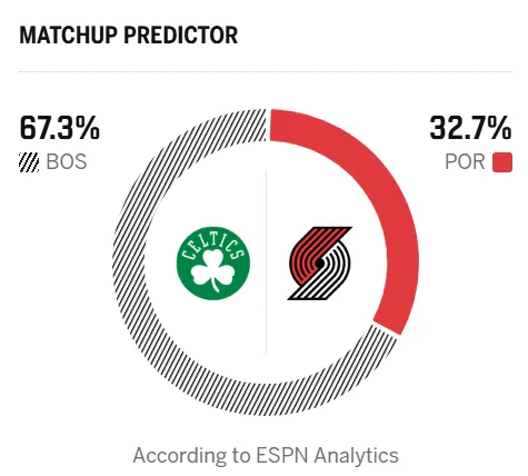 賽前,日比人勝美媒ESPN預測本場比賽,賽凱勝率凱爾特人勝率67.3%,爾特開拓者勝率32.7%。