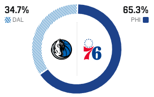 [流言板]ESPN預(yù)測(cè)明日比賽勝率:獨(dú)行俠僅為34.7%,而76人達(dá)到65.3%