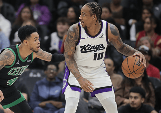 國(guó)王球員德羅贊出戰(zhàn)14分鐘,中得助攻投籃6中5得到12分2籃板1助攻1搶斷。到分