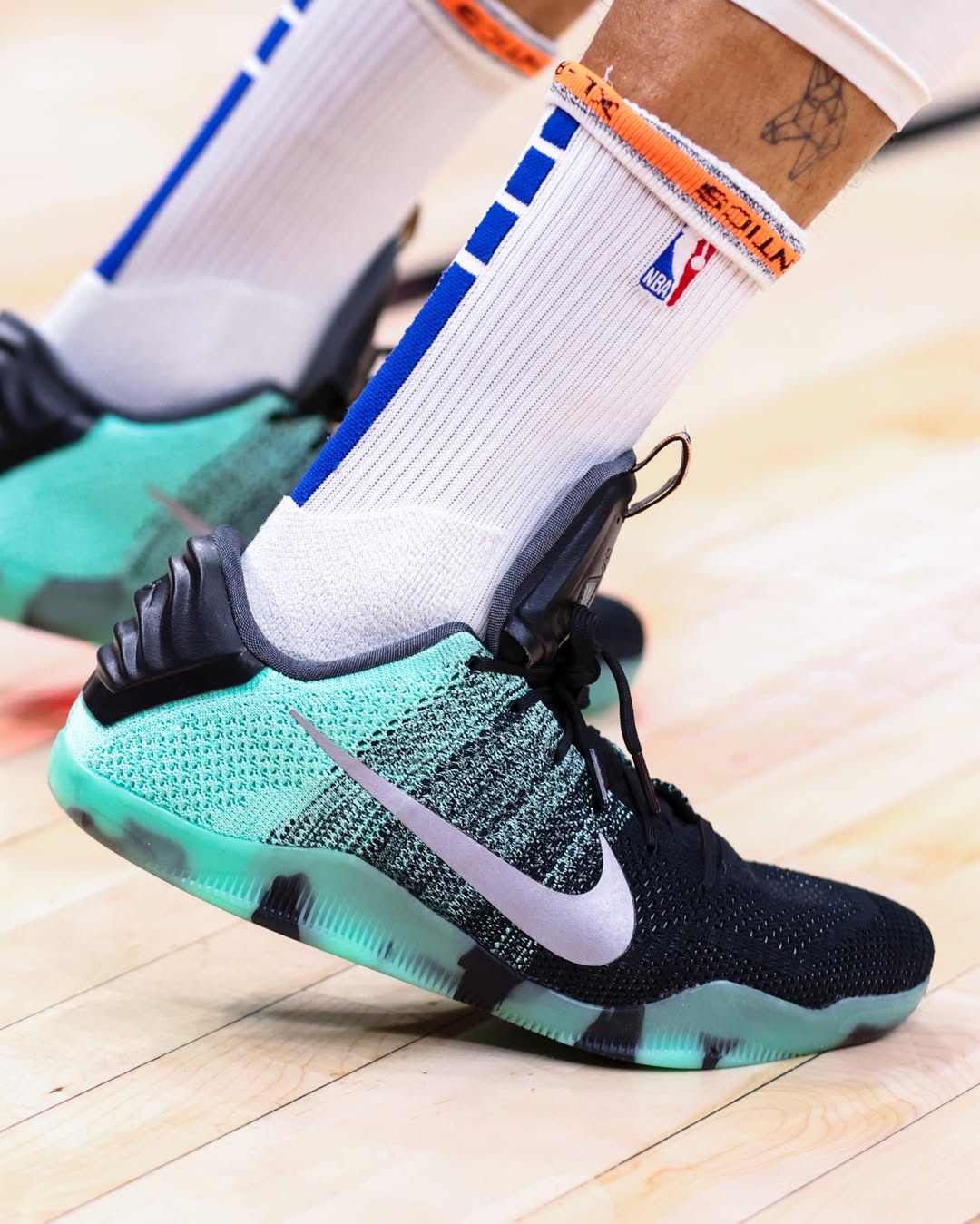 比賽中,斷蓋庫里上腳全明星配色Nike Kobe 11 Elite Low。流言里穿