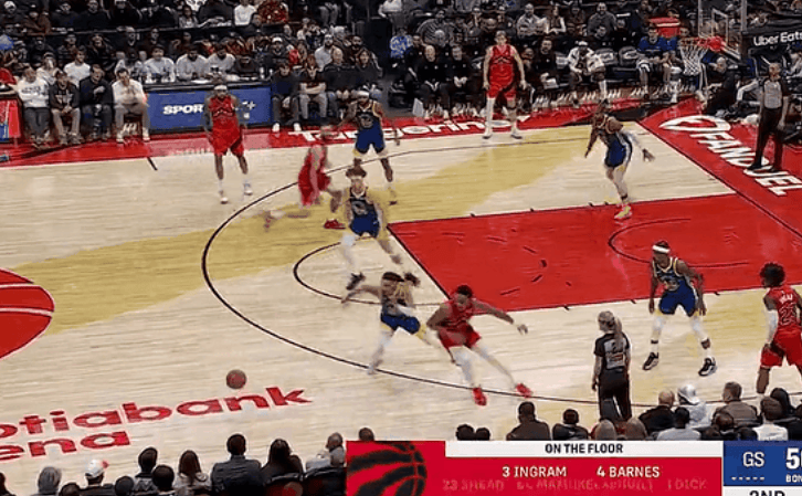 虎撲12月29日訊 NBA常規(guī)賽,勇士對(duì)陣猛龍的查德次節(jié)比賽正在進(jìn)行中。