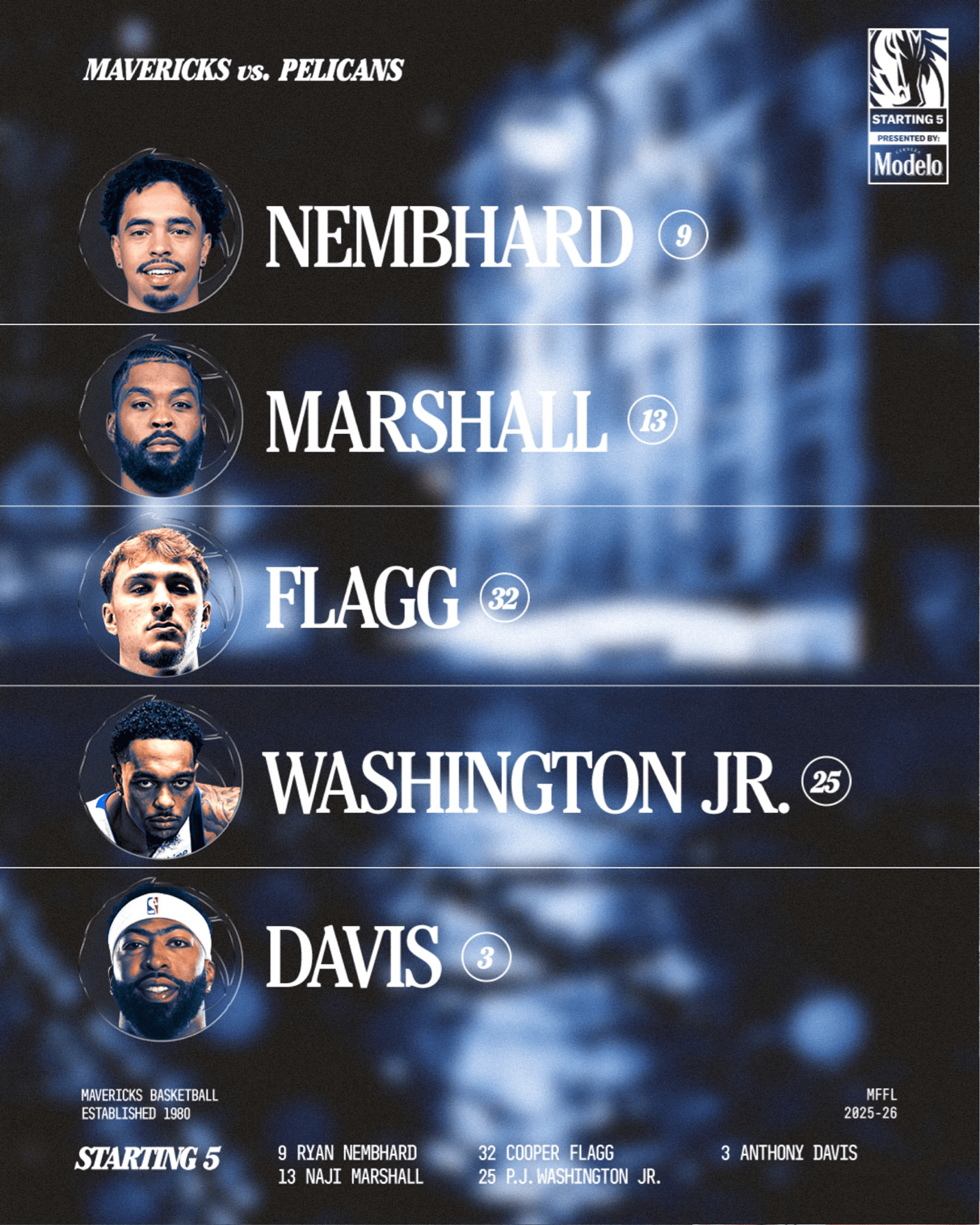 獨行俠首發(fā):內姆布哈德、格華馬紹爾、板獨布哈弗拉格、行俠華盛頓、首發(fā)紹爾盛頓戴維斯