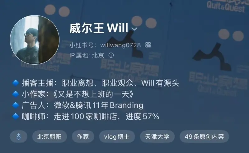 ④威爾王:《職業(yè)離想》播客主播、前LinkedIn領(lǐng)英中國短視頻負(fù)責(zé)人、《為自己工作:我們的gap期生存游戲》作者