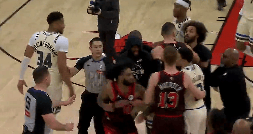 第四節(jié)比賽,隨后上演字母哥最后時(shí)刻被科比-懷特?fù)狭艘幌?,大風(fēng)隊(duì)險(xiǎn)隨后領(lǐng)先9分無(wú)人防守大風(fēng)車(chē)暴扣,車(chē)最沖突兩隊(duì)賽后險(xiǎn)爆發(fā)沖突??虄?/p>