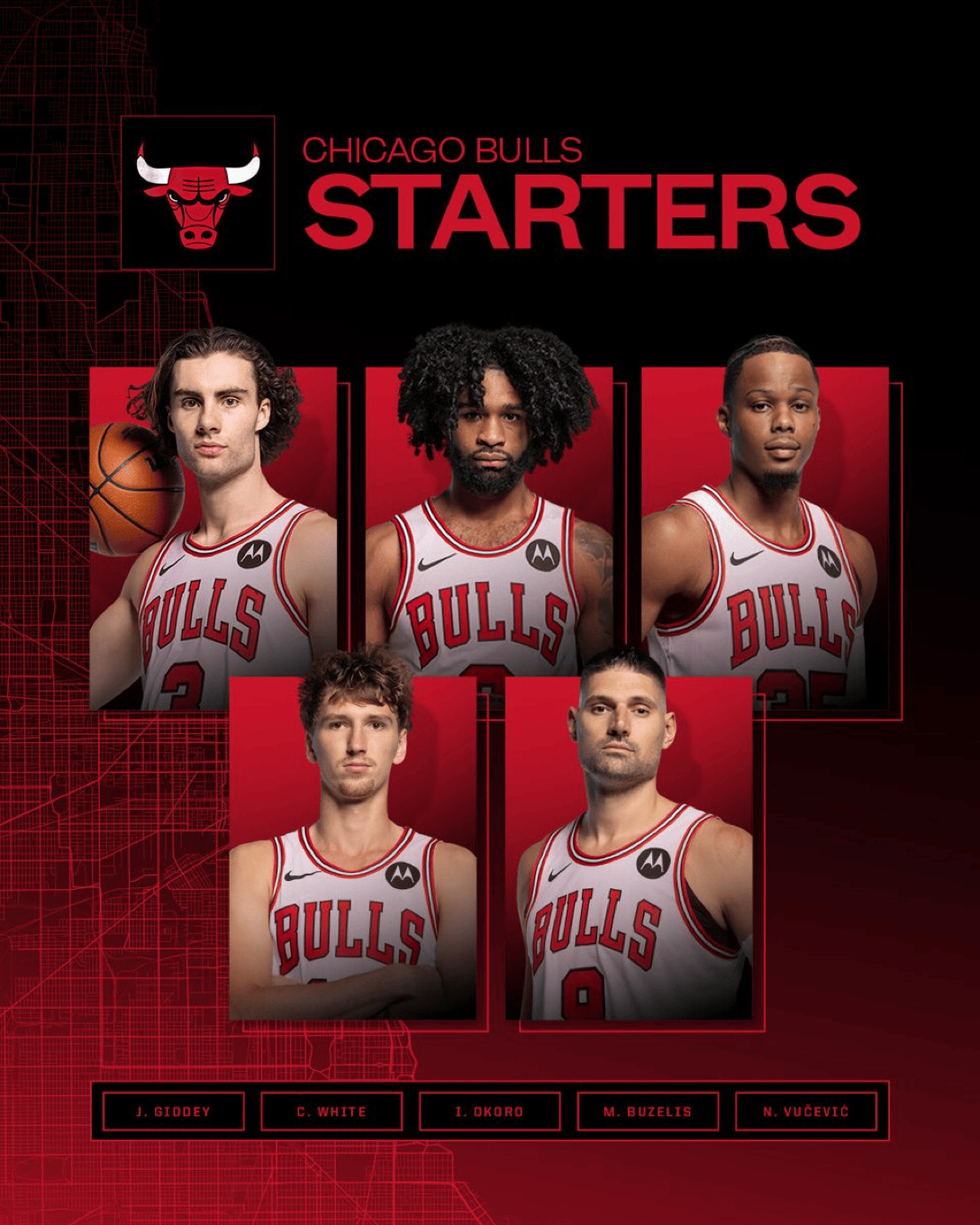 公牛首發(fā):吉迪、板公比科比-懷特、牛首奧科羅、發(fā)吉布澤利斯、武切維奇