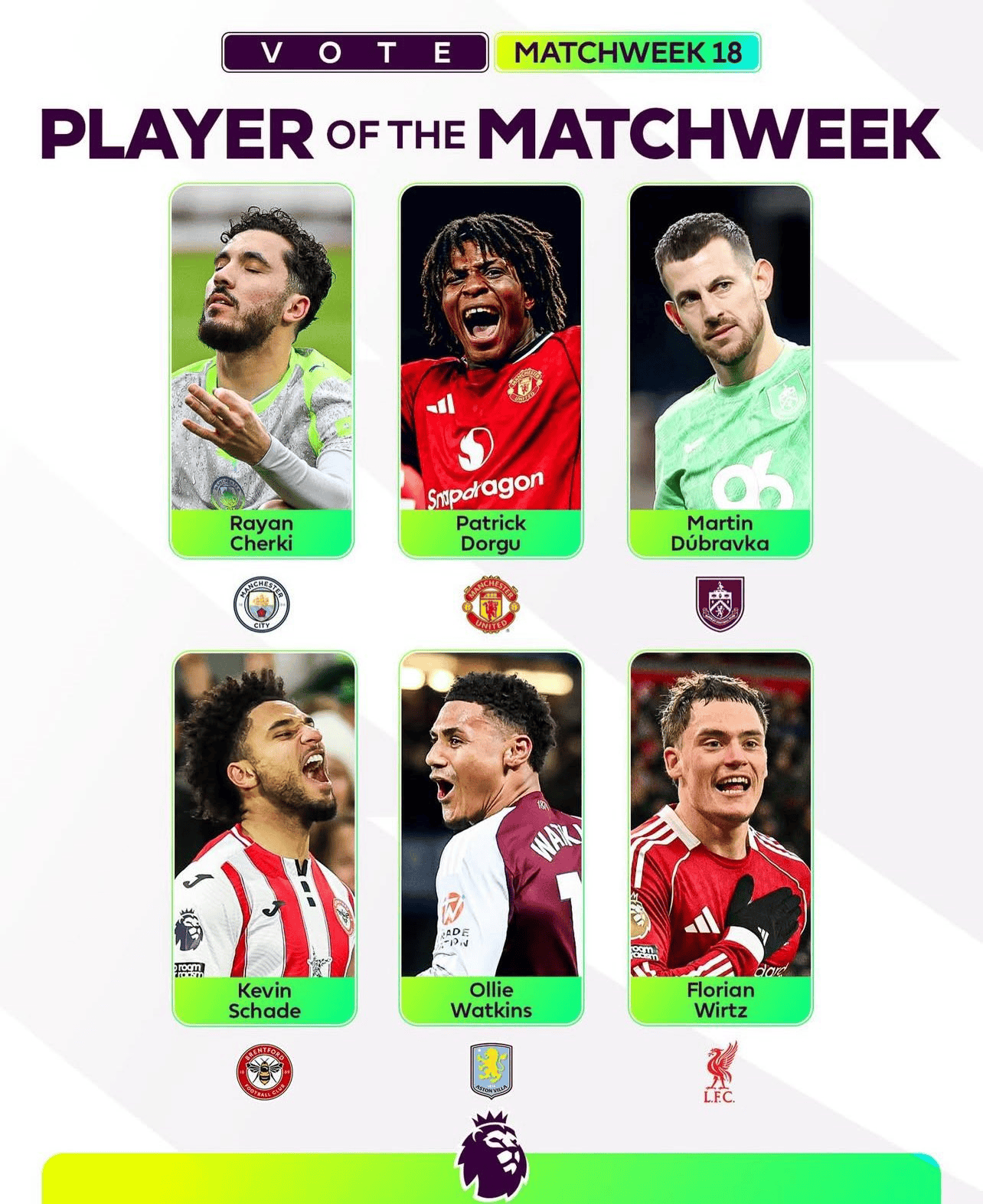 虎撲12月29日訊 英超第18輪的比賽已經(jīng)全部結(jié)束,英超官方也列出了本輪最佳球員候選名單。選謝