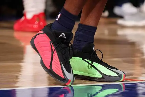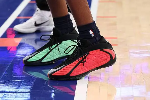 比賽中,獻(xiàn)分莫布利上腳圣誕配色adidas AE2。助攻