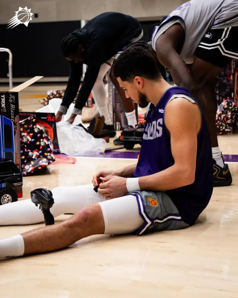正值圣誕節(jié)之際,菲尼克斯太陽隊(duì)給所有球員都送上了一份節(jié)日驚喜:一輛帶有各自球員號(hào)碼的板驚玩具車。