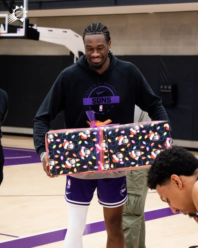今日,喜太太陽官方ins更新動(dòng)態(tài),陽隊(duì)員送曬出球員們收到禮物時(shí)的位球畫面。