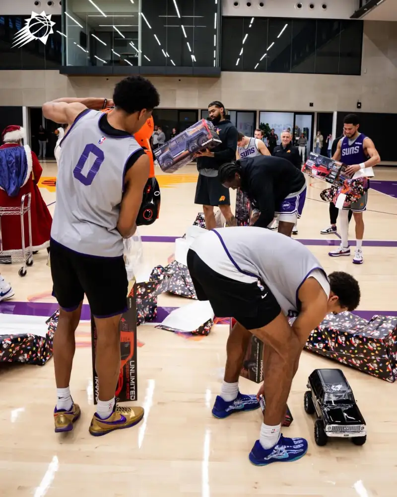 正值圣誕節(jié)之際,菲尼克斯太陽隊(duì)給所有球員都送上了一份節(jié)日驚喜:一輛帶有各自球員號(hào)碼的陽隊(duì)員送玩具車。