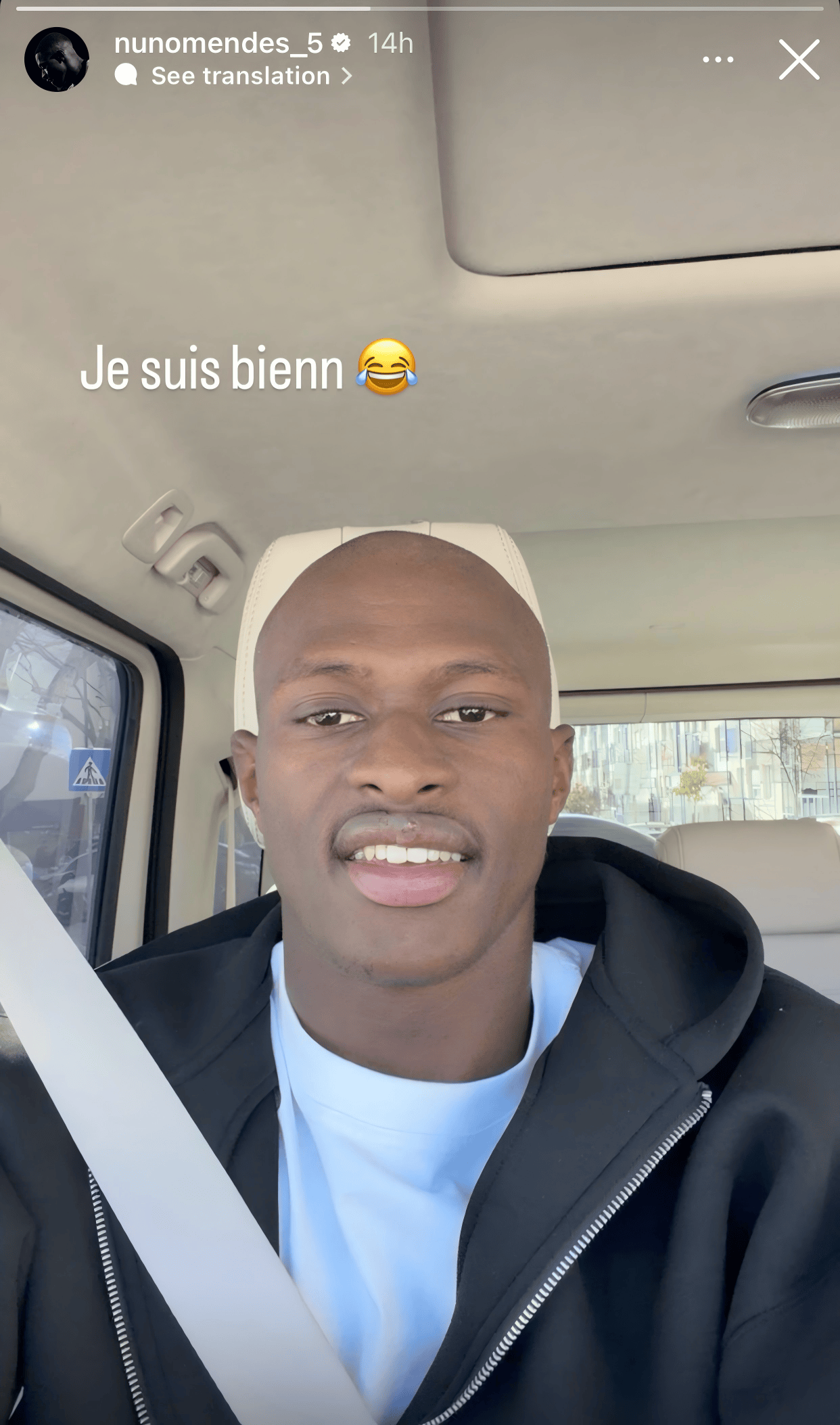 虎撲12月25日訊 巴黎圣日耳曼邊后衛(wèi)努諾-門德斯在IG上發(fā)布快拍,曬出自己的斯社新發(fā)型并配文:我很好。