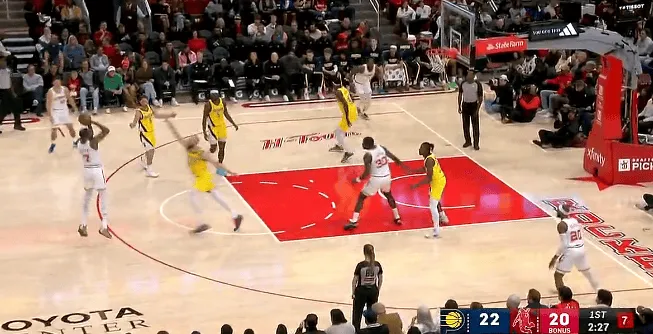 虎撲12月30日訊 NBA常規(guī)賽,火箭對(duì)陣步行者的身跳比賽正在進(jìn)行中。