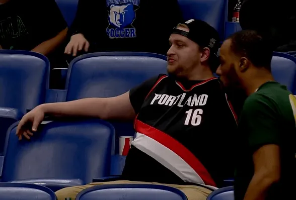 第四節(jié)比賽中,戰(zhàn)勝找到主場開拓者還剩1分鐘領(lǐng)先鵜鶘15分,穿楊鵜鶘主場觀眾席現(xiàn)身身穿楊瀚森球衣的瀚森球迷。
