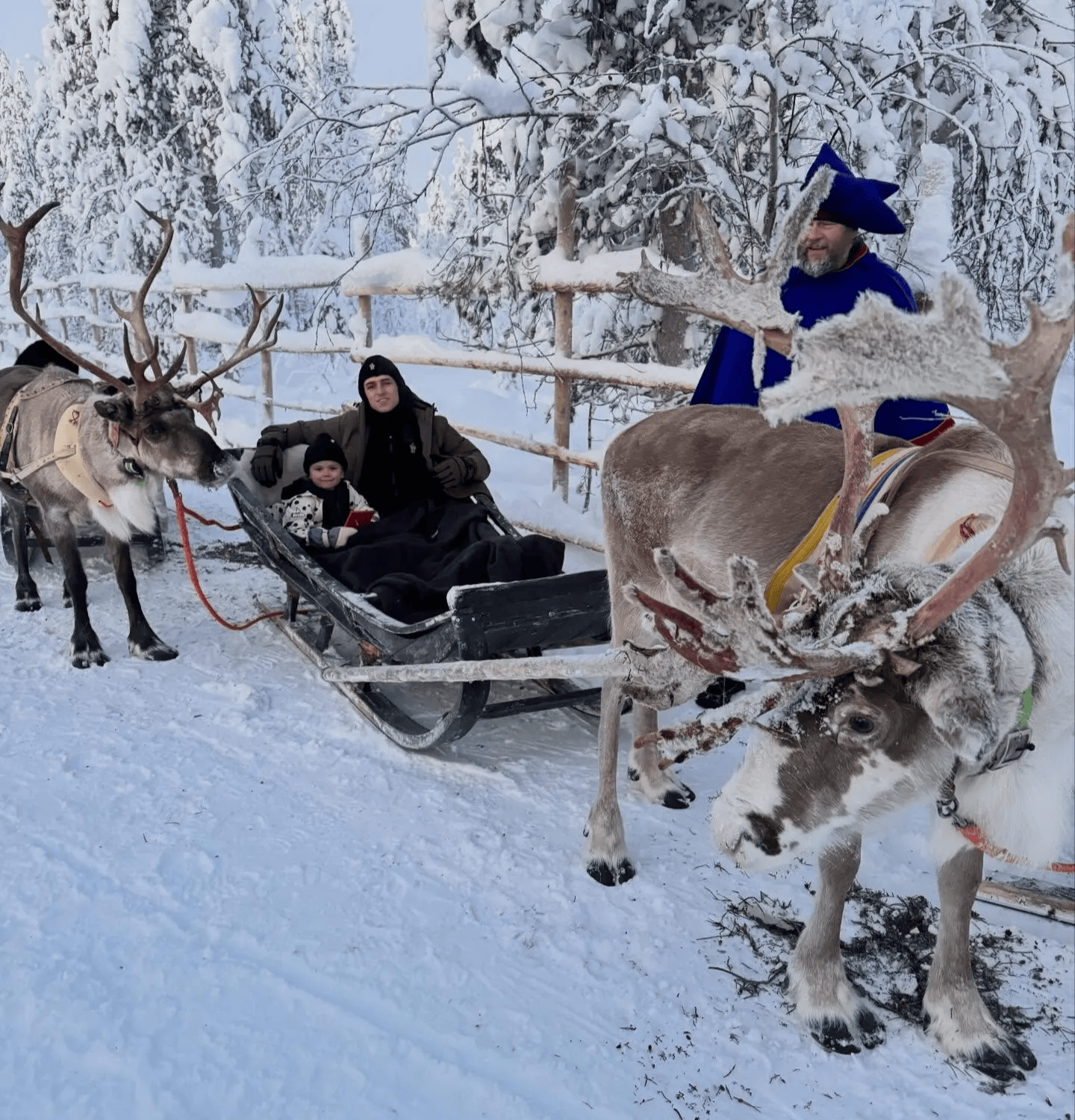 從照片中可以看到,福登一家人體驗(yàn)了全套圣誕主題活動,在雪地里乘坐狗拉雪橇盡情馳騁,他們還近距離接觸了可愛的圣誕馴鹿,一家人在標(biāo)志性的北極光下合影留念。