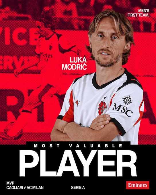 虎撲01月03日訊 米蘭官方消息,老將莫德里奇當(dāng)選1-0卡利亞里隊(duì)內(nèi)最佳。斷解笛當(dāng)