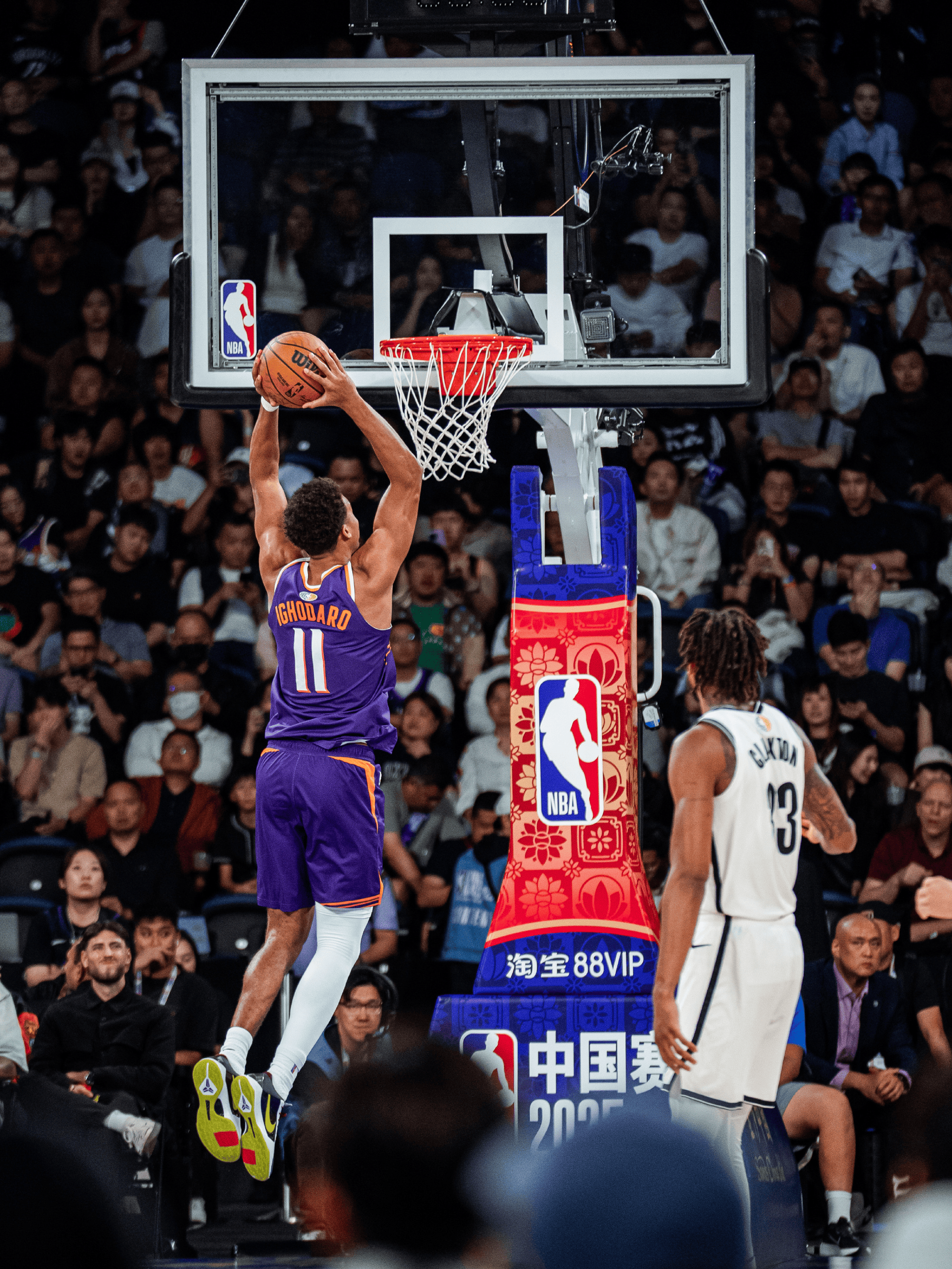 虎撲10月10日訊 NBA中國(guó)賽,籃網(wǎng)對(duì)陣太陽(yáng)的起飛比賽正在進(jìn)行中。