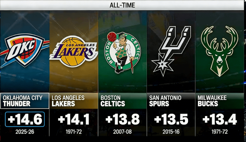 俄克拉荷馬城雷霆:+14.6(2025-26 賽季)