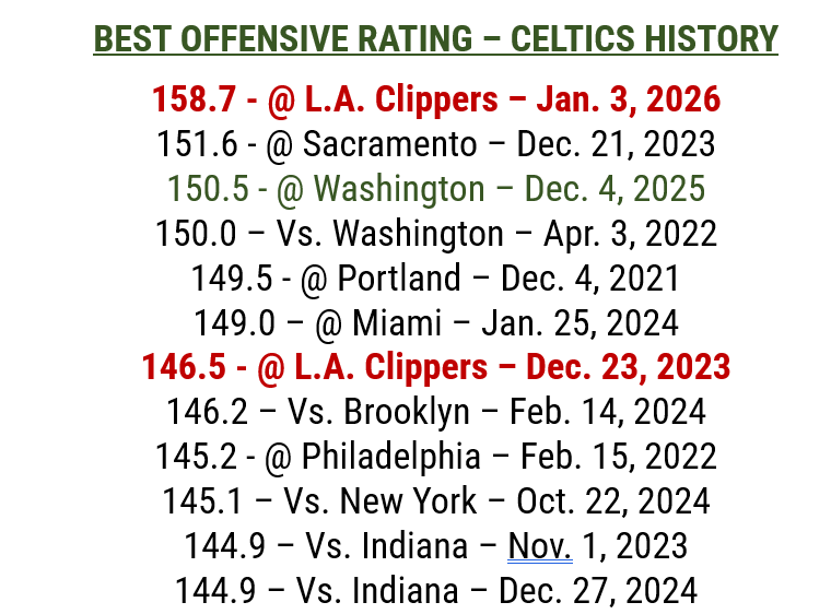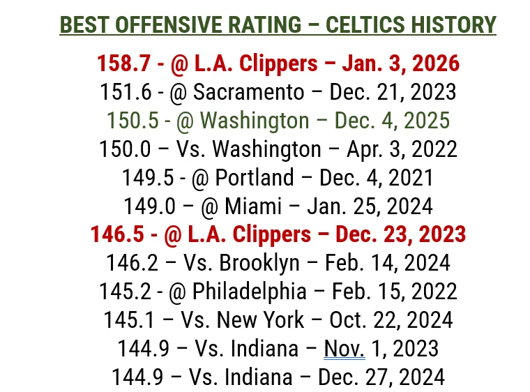凱爾特人記者Sean Grande分享數(shù)據(jù):凱爾特人今日戰(zhàn)勝快船的比賽中進攻效率值高達158.7,大幅刷新隊史單場進攻效率值新高,此前最高是23年打國王的151.6。