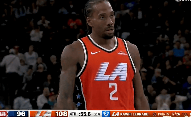 [流言板]倫納德兩罰兩中得到55分,追平哈登保持的快船隊史得分紀(jì)錄